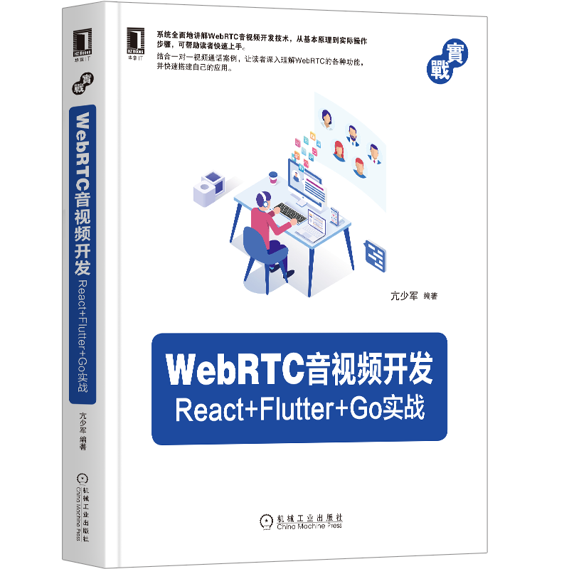 《WebRTC音视频开发:React+Flutter+Go实战》从基本概念、基础应用和综合案例系统介绍WebRTC技术的原理与应用,提供了前后端整体解决方案:PC-Web端使用的是React技术,后端使用的是Golang技术,移动端使用的是Flutter技术。