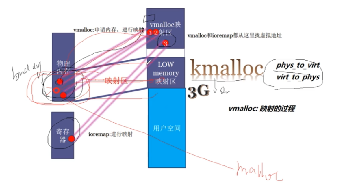 - 我们知道 低端内存区域,一开机就会被线性映射到 内核空间(可以使用 phys_to_virt / virt_to_phy)。所以 kmalloc 不存在 映射的过程(很快),而 vmalloc 需要有映射的过程(很慢)。