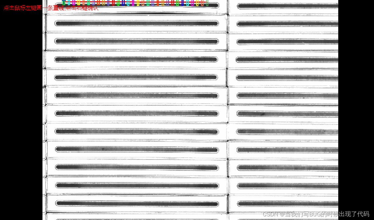 draw_rake (Regions,WindowHandle , 30, 60, 15, Row1, Column1, Row2, Column2)//画一条直线list_files ('F:/blob/孔洞尺寸测量', ['files','follow_links'], ImageFiles)