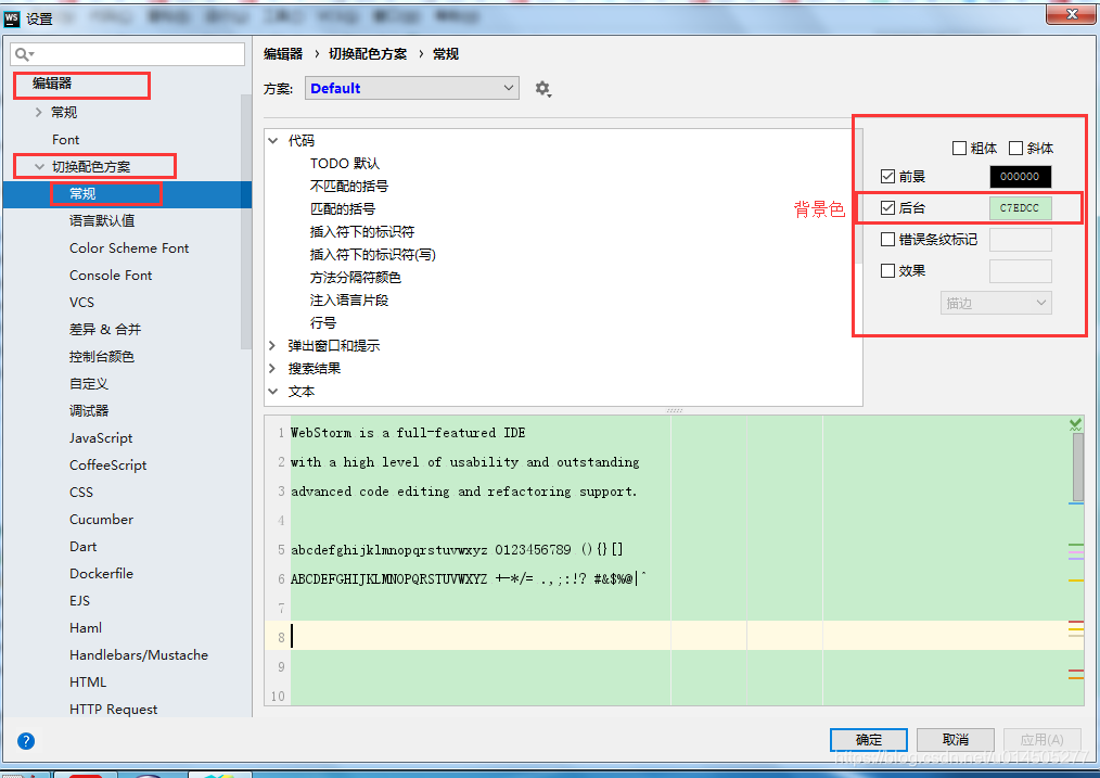 按照顺序依次打开File-->settings-->Editor-->Color Scheme