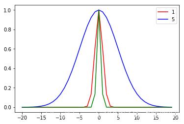 称为方差(宽度),表示函数跌落到零的速度。红色线条