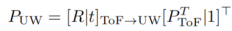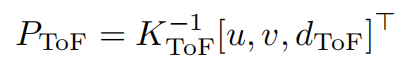 第一步是将ToF深度 d T o F d_{ToF} dToF投影到超广角相机1. 将ToF深度转换为ToF点云: