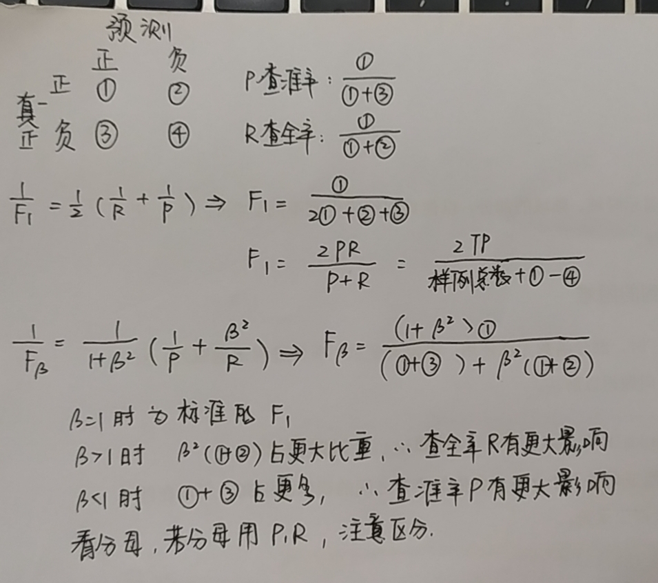 F1度量的一般形式Fβ,能让我们表达出对查准率/查全率的不同偏好,它定义为: