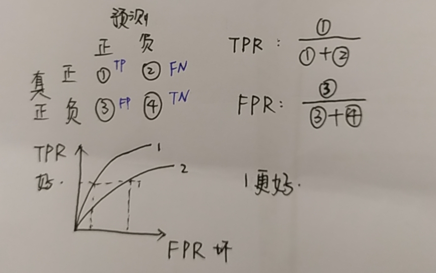 FPR,假正例率,(真实反例)中(预测正例)的比例.