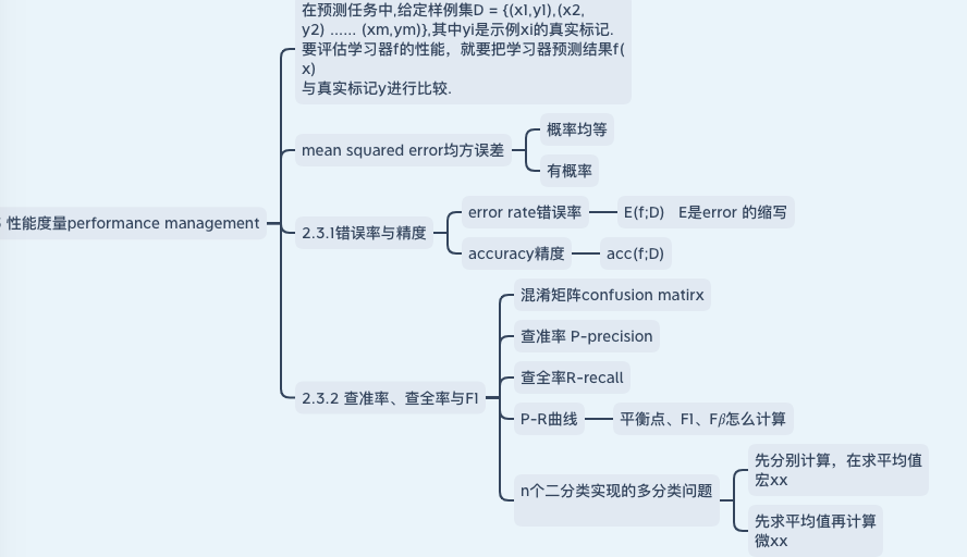 错误率和精度是分类任务中两种最常用的性能量度.既适用于二分类任务,也适用于多分类任务.错误率是分类错误的样本数占样本总数的比例,精度则是分类正确的样本数占样本总数的比例.对样例集D,分类错误率定义为: