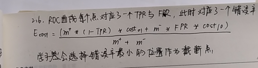 为权衡不同类型错误所造成的不同损失,可为错误赋予"非均等代价" (unequal cost).
