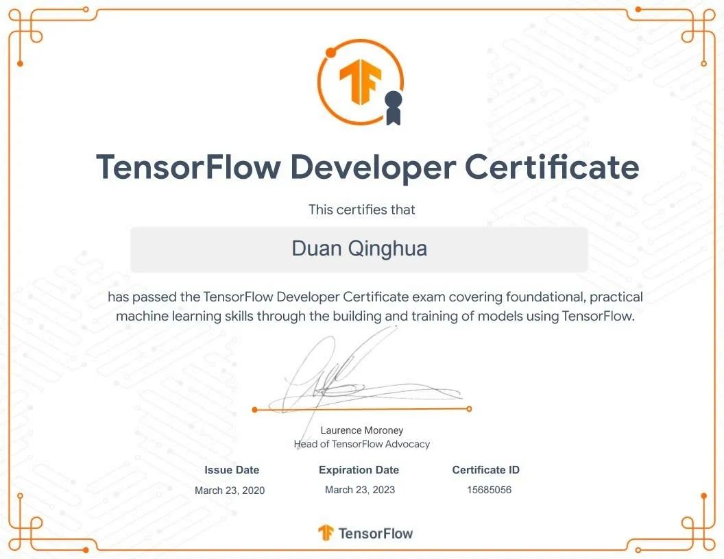 关于 TensorFlow 2.2 版本具体有哪些优点,我在这里就不赘述了,大家可以查看 码上作答第一期(上)| 10 个学好 TensorFlow 2.2 的理由 进行复习。从 TensorFlow 0.X ~ TensoFlow 2.2 的 4 年经验积累,为我后来获得认证打下良好基础。
