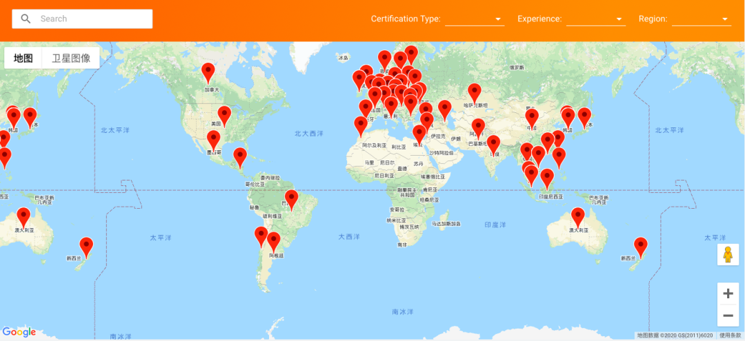 据我所知,TensorFlow 不仅提供了认证考试,还搭建了认证网络,目的是连接企业和开发者,把全球范围内通过认证考试的开发者加入人才库,在官方页面展示,企业可以按照地区进行人才检索。此外,通过认证的开发者还可以在个人简历、GitHub 、社交媒体(领英)上展示这项证书。
