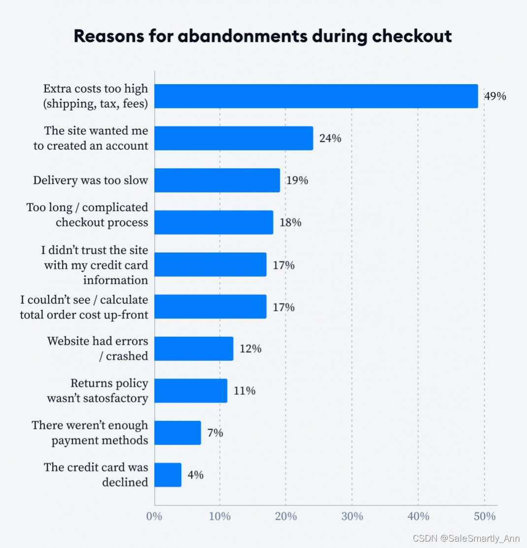 优化结账流程和用户体验对于在线商店至关重要。事实上,根据 Baymard 研究所的一项研究,几乎41%的放弃是由于结账问题。