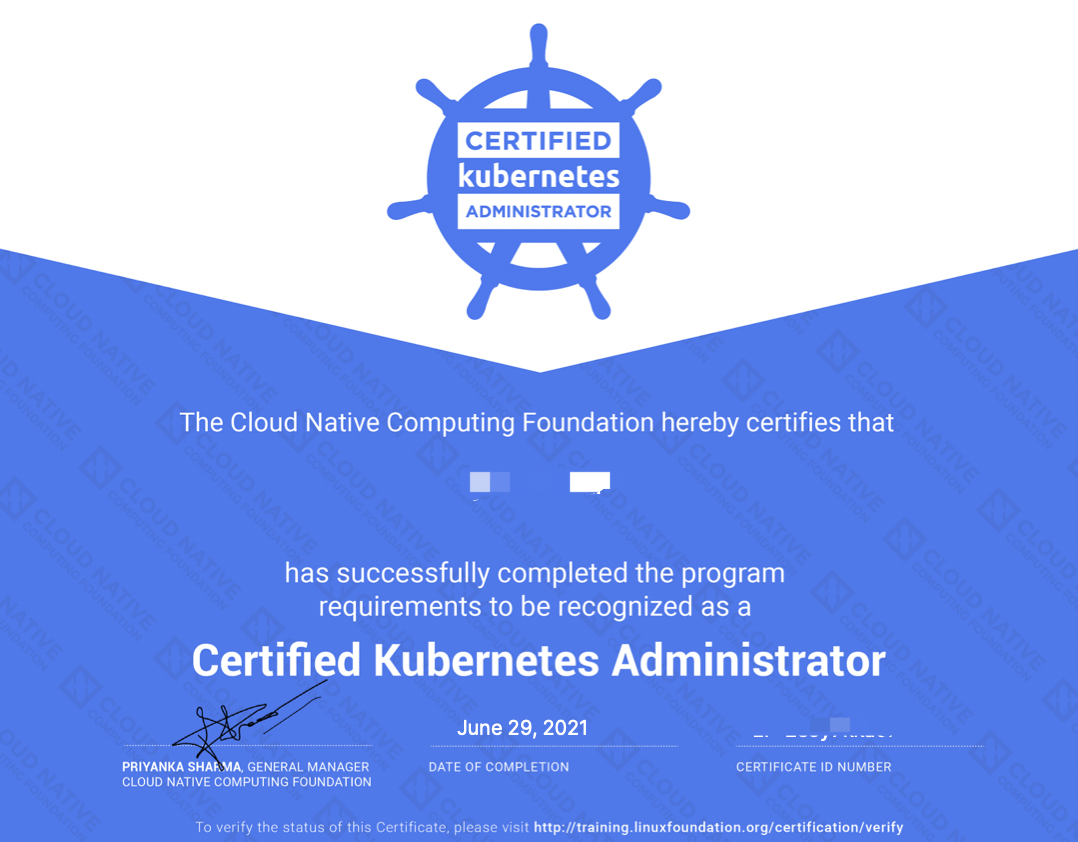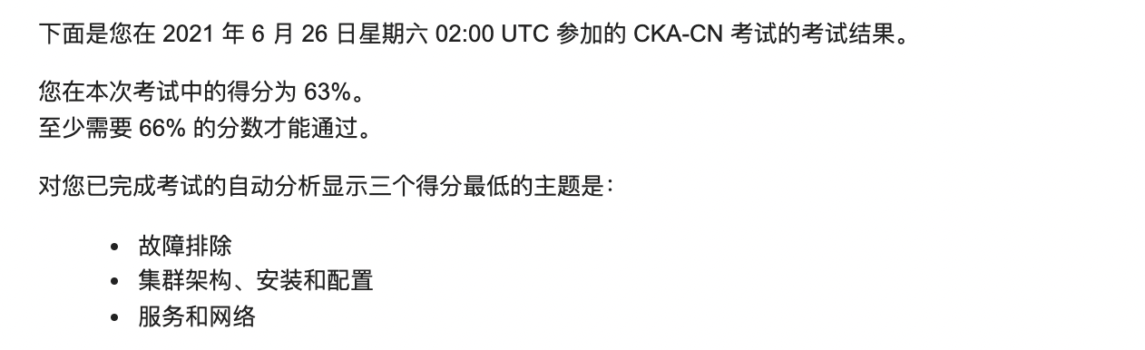 考完CKA之后因工作稍微有点忙了,就把这事给忘了 直到有9月20号无意看到网站上 CKAD 9月28号要有更新和中文版 我有点慌了 变题了那就更不好考了,我开始疯狂的在网上寻找资料 然而找了半天CKAD实话说网上的资料几乎很少,原题库我居然没找到 然后就对着网友提供的 GitHub上的那个大题库刷,刷完一遍 发现这题库日常还是有很多能用到的,有很多细节我居然不知道 学到了学到了 我约了一个 2021 年 9 月 26 号早上凌晨4点到6点的时间,别问为啥选这个时间,因为别的时间都排到10月之后了;到了9月26晚上买了两罐红牛 一晚上也没睡 到早上7点多才完事,洗漱上班 考的实话说没啥底,次日成绩出来了 通过了~~~ 真是意外惊喜 我有几题没做原以为会挂掉!!!