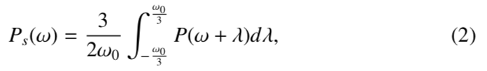 通过一个矩形窗对(1)得到的功率谱进行简单滤波,角频率w0=2pai/T0。矩形窗长设为(2/3)*w0,窗长为 (3/2)T0=1.5T0,为了确保相邻结构之间的影响低于第一步提到的30dB。