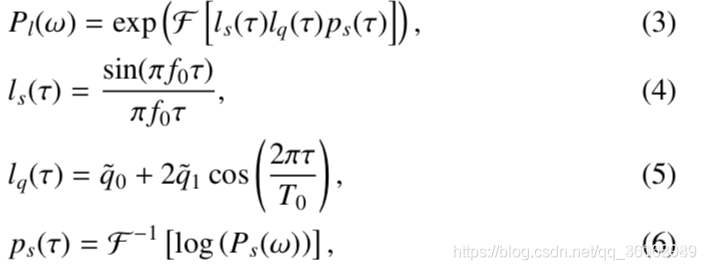 (4)(5)都是提升函数,(4)for smoothing,是一个频域窗函数,在倒谱域中如下图所示,nT0的值都为0,这样可以去除时变分量。(5)for spectral recovery。其中参数q0为1.18,q1为-0.09。(6)为倒谱。