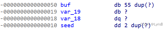 观察存放伪随机数的seed与buf之间偏移为0x40,而buf是可以在输入name的时候控制内容,而输入限制了0x50个,可以利用buf溢出来偏移到seed上,覆盖掉seed后就可以自己生成一样的伪随机数了