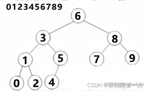 int tem[N];//位置下标数组int n,cnt = 0;//先依据完美二叉树的层序遍历建立一颗标准树(只有通过标准树的位置的对应才能实现对于二叉搜索树层序遍历的输出),再中序访问(左中右)建立按照中序访问顺序的位置对应层序遍历的位置(如图中0位于标准树的第8号位置)