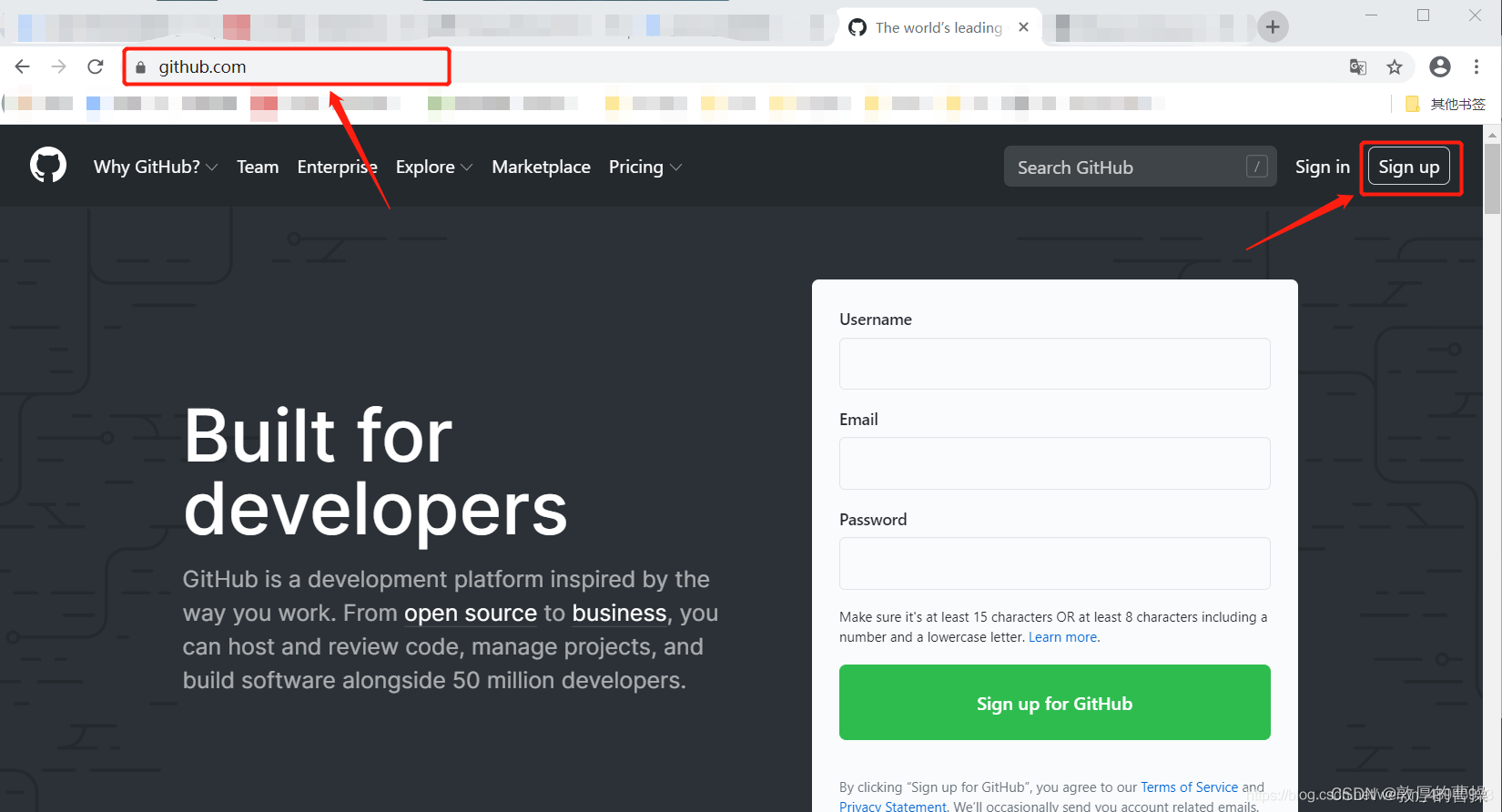 下面是注册GitHub账号教程:(注意看图片上的文字提示)