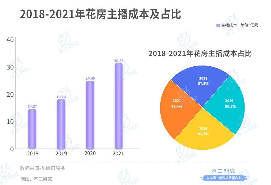 2018-2021年其主播成本分别为14.87亿元、19.20亿元、24.46亿元、30.85亿元;分别占总销售成本的87.9%、90.3%、91.5%、91.4%。