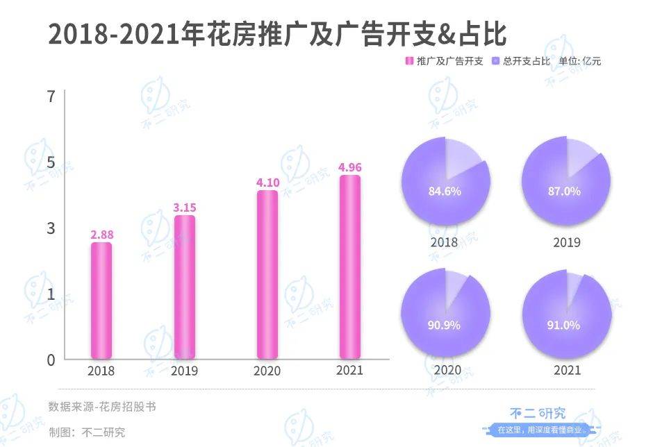 花房在招股书中解释,推广及广告开支是线上用户流量转介、线下营销活动产生的费用,及专门制作内容的相关成本。
