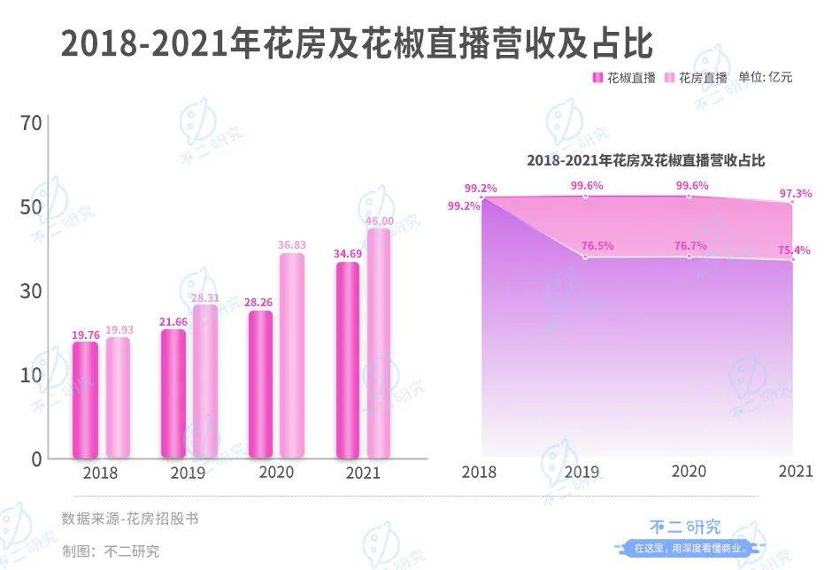 去年11月的一篇旧文中,我们聚焦于花房首次闯关港股IPO,且试图开启多元化;时至今日,其盈利模式单一、营收来源单一等“致命伤”依然未解:2021年,其9成营收依靠直播服务;若按照平台划分,近8成营收来源于花椒。
