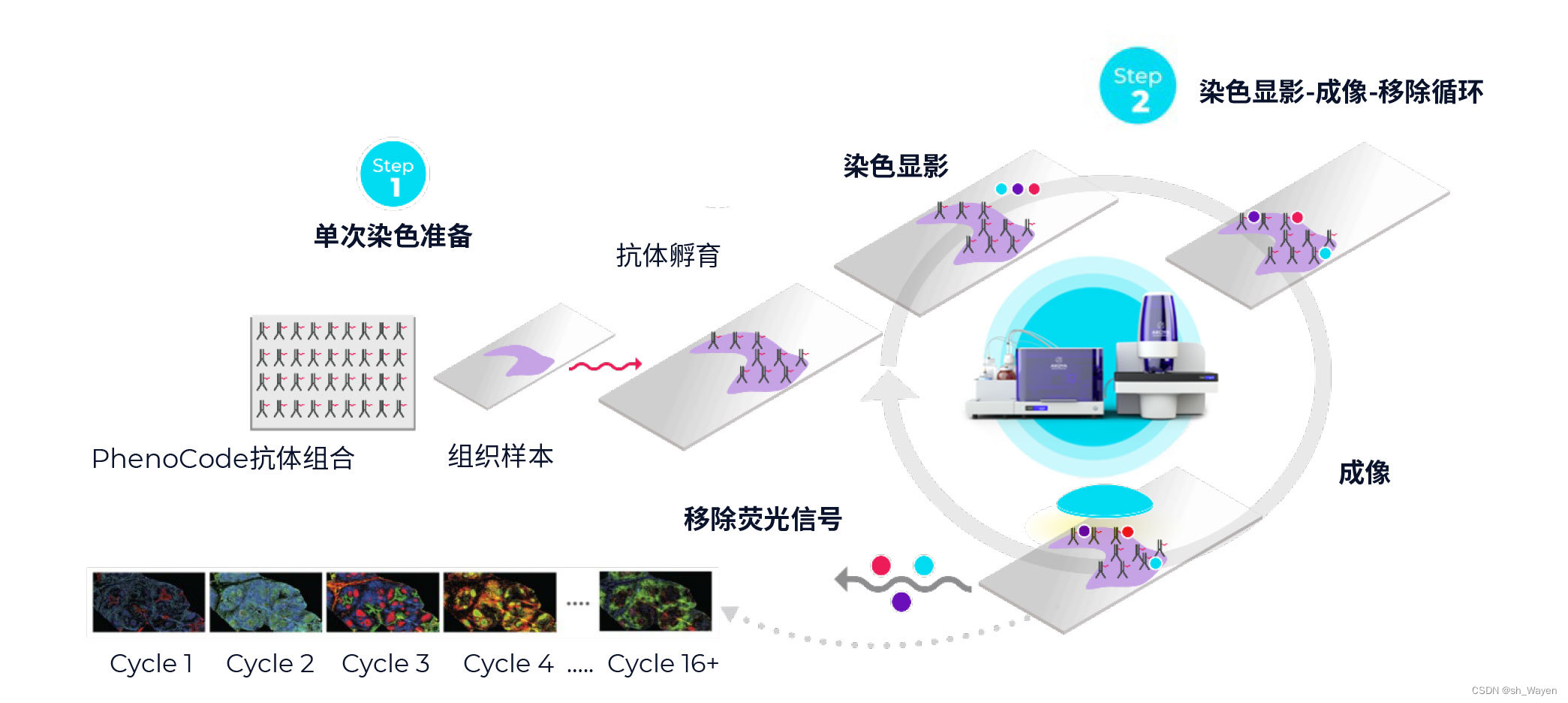 华盈生物提供服务的Akoya的PhenoCycler(原CODEX)技术平台,采用专利的DNA偶联抗体检测技术结合自动化高分辨荧光显微镜,可还原蛋白质和特定细胞在组织中的真实分布。可实现近百种蛋白质的空间原位检测。