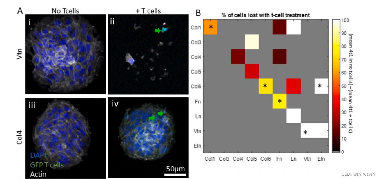 尽管一系列的研究表明免疫浸润和肿瘤基质之间存在联系,但尚不清楚 ECM 是否可以直接影响免疫系统清除肿瘤的最终步骤。为了研究ECM底物是否具有控制 T 细胞清除恶性乳腺癌细胞的能力,来自美国劳伦斯利弗莫尔国家实验室的研究人员对此进行了研究,并将研究成成果“Extracellular matrix modulates T cell clearance of malignant cells in vitro“发表在的Biomaterials杂志上。