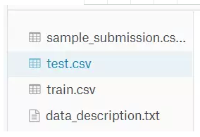当然先下载数据,包括训练数据,测试数据,还有数据描述,提交结果样本,如下图: