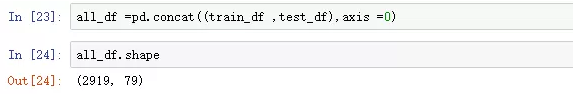 将训练集和测试集,前后连接,合起来2919条数据,特征还是79个。