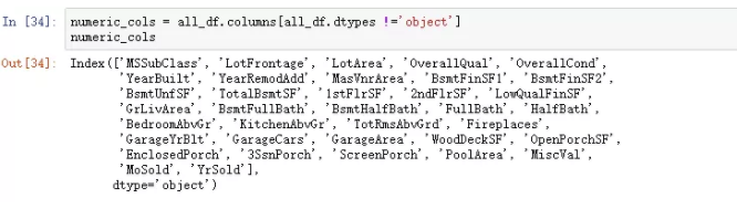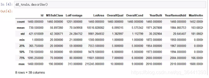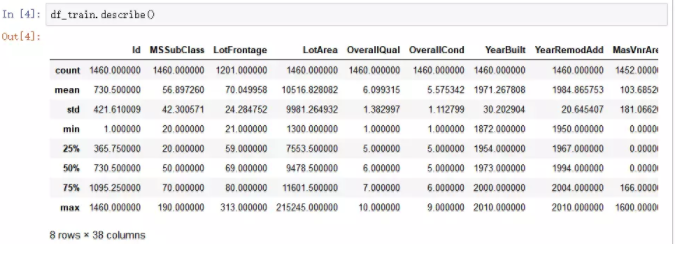这个表展示的数据都为数值型的数据,有38个特征是数字型。