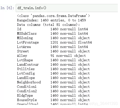 字段太多,截取了开始的部分,共1460行数据记录,如果统计的非空记录少于1460,说明有缺省值。