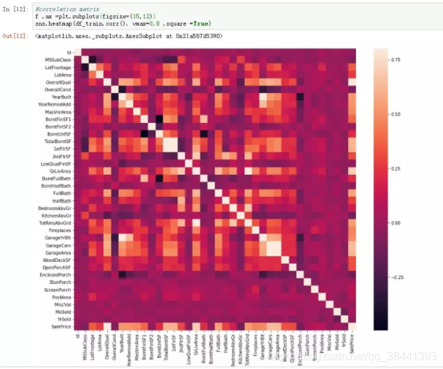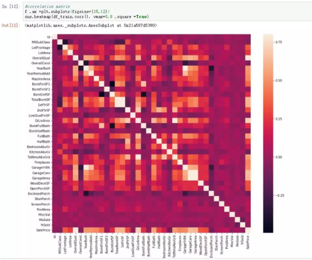 人眼观察:从图中看出,OverallQual,GrLiveArea,TotalBsmtSF, 1stFlrSF,GarageCars.都是相关系数比较靠前。