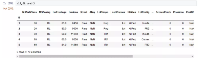 81列,其中特征80个,包含预测标签1个,特征标签79个。