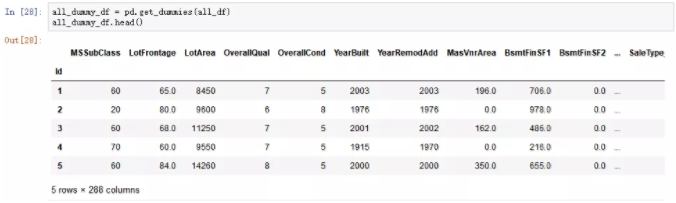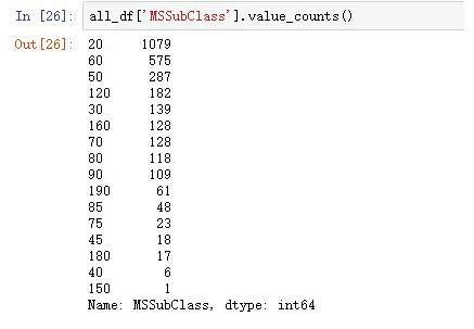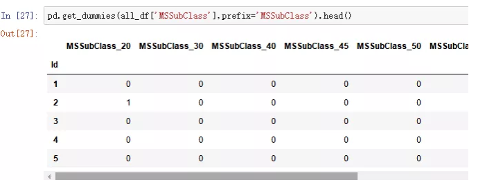 MSSSubClass 被我们分成了12个column ,每一个代表一个Category, 是就是1,不是就是0。