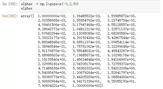 交叉验证,存储不同的alpha下,均方误差,通过绘图不同参数下的误差曲线查看最好的参数。