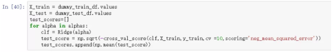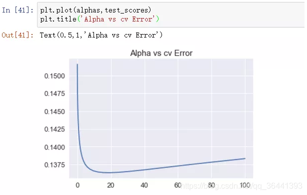 图中看出:alpha=10~20时,score达到0.135 处于误差最低。