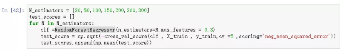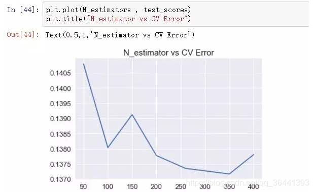 上图中看到树的个数 n_estimators取150是其中最佳的点,均方误差为0.1372 .