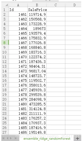 来看下生成结果文档ensemble_ridge_randomForest.csv: