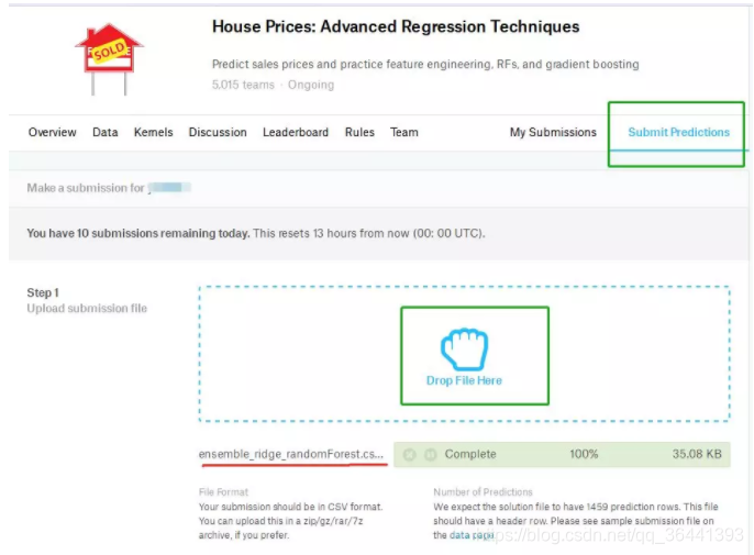 检查完格式,就可以将文件提交到kaggle 房价预测项目中,就算完成了!