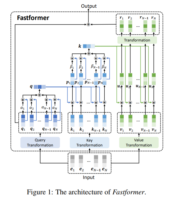 Fastformer 的整体架构如下图所示。