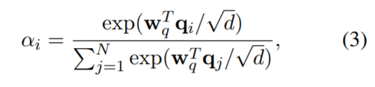 其中,w_q∈R^d 为可学习的参数向量,全局注意力查询向量的计算如下: