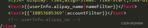 filters: {//new Array(number),一个参数中间数字是几数组的长度就是几//join(String),将数组转为字符串并且在中间添加你的标识,::中间!// [1,2,3,4].join('*') = [1*2*3*4] 也就是说数组长度是5实际只有四个*nameFilter(value) {// value是陈大牛,根据位数转为数组,在数组item间添加*号,1*2*3,三字的话2*const end = new Array(value.length).join('*');// 这个通过slice截取第一位,const start = value.slice(0, 1);//因为*刚好少一位,直接拼接上姓,得到陈**,更长或短的名字同理return `${start}${end}`;},accountFilter(value) {//这边示例过滤手机号//先获取后四位const end = value.slice(-4);//手机号是11位,长度是10(length从0开始),现在要计算中间有几个*,//获取前三位const start = value.slice(0, 3);//已知我显示了前三位后四位,共七位,是11-7,//转数组join一下刚好少一位*,const middle = new Array(value.length-6).join('*');//拼接起来return `${start}${middle}${end}`;}},