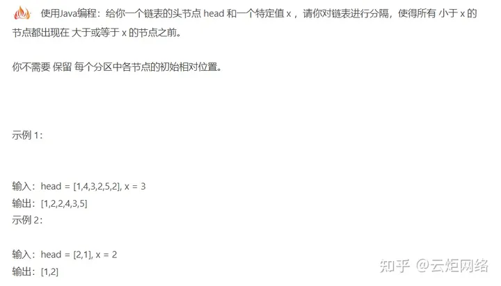 另一个例子是,给定一个链表,要求将链表分为三个部分,其中一个部分包含小于 x 的节点,另一个部分包含等于 x 的节点,最后一个部分包含大于 x 的节点。可以使用这个函数来实现这个功能。