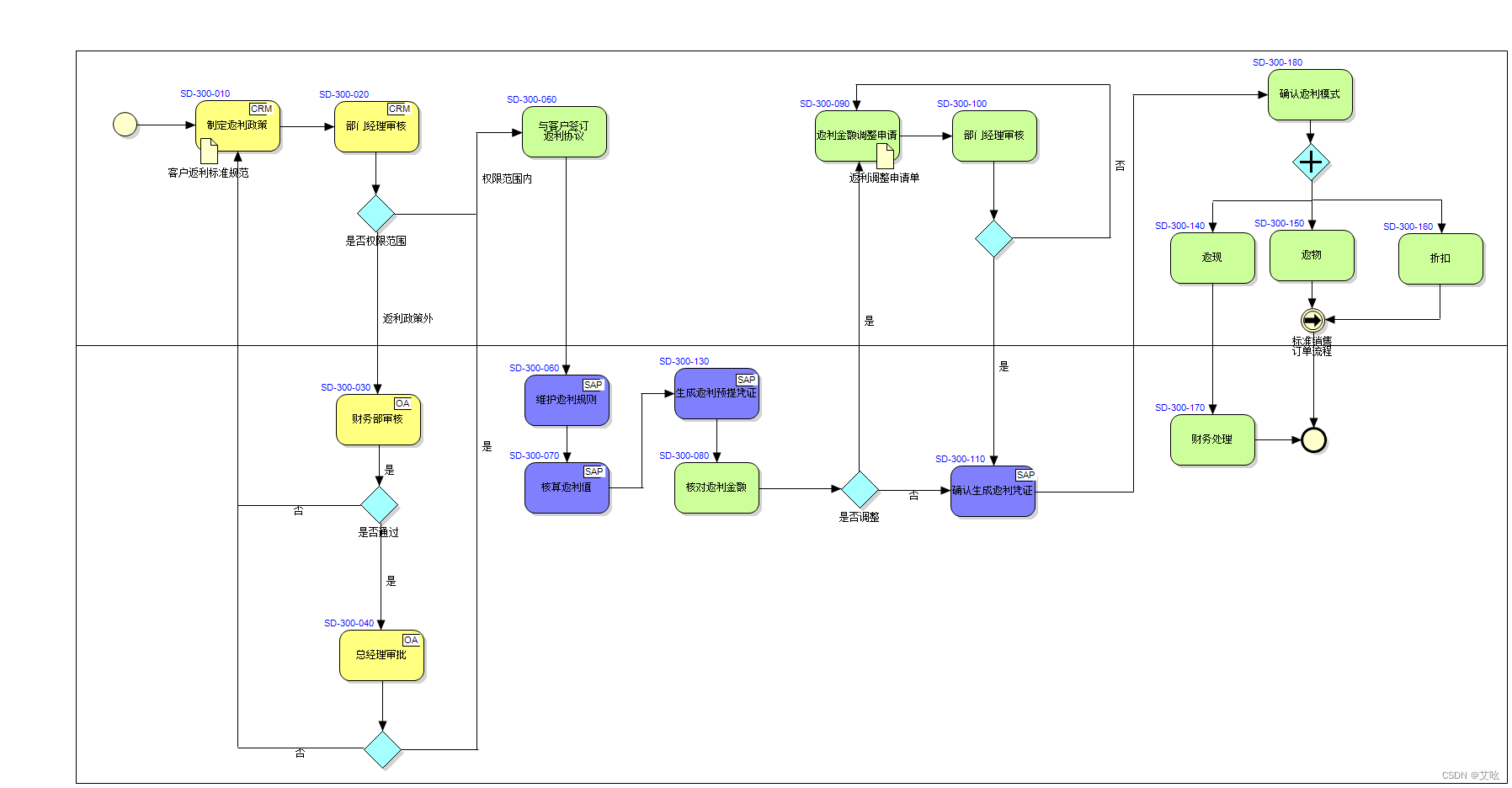 销售返利一般由销售部门与客户协商,协商后销售人员提出返利政策的审批,若公司同意返利政策,由财务部门导入SAP系统;
