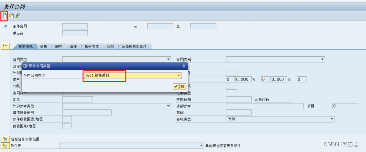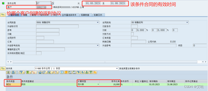 依据返利政策使用事务码:WCOCO,创建返利合同