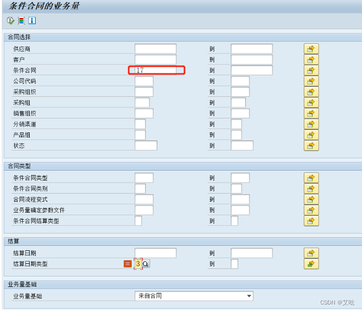 创建完成后,使用事务码:WB2R_BUSVOL,查看合同量