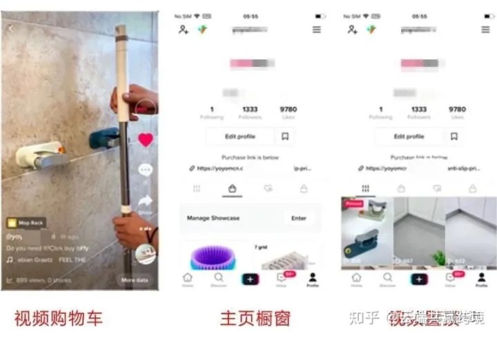 通过申请资质后,在Shopify的后台绑定一个TikTok账号,TikTok账号则会出现主页橱窗功能和短视频购物车功能,其中还增加了一个视频置顶的功能。但目前,直播还不能挂购物车。