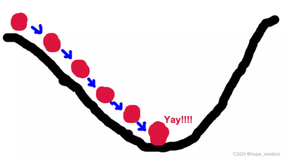 所以,我们重复利用这个方法,反复求取梯度,最后就能到达局部的最小值,这就类似于我们下山的过程。而求取梯度就确定了最陡峭的方向,也就是场景中测量方向的手段。