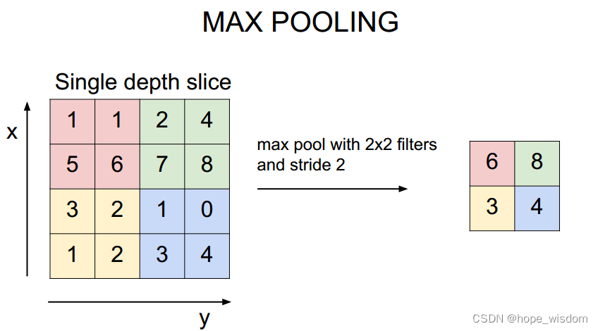 池化实际上是一种形式的降采样。有多种不同形式的非线性池化函数,而其中“最大池化(Max pooling)”是最为常见的。它是将输入的图像划分为若干个矩形区域,对每个子区域输出最大值。直觉上,这种机制能够有效的原因在于,在发现一个特征之后,它的精确位置远不及它和其他特征的相对位置的关系重要。池化层会不断地减小数据的空间大小,因此参数的数量和计算量也会下降,这在一定程度上也控制了过拟合。