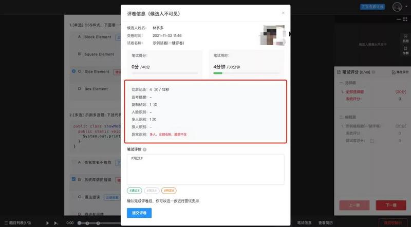 在线笔试可以完成数百数千份简历的筛选,过滤掉无法通过初筛的候选人,对面试官和HR的工作都是非常有帮助的,提效的同时也保证了招聘的质量。