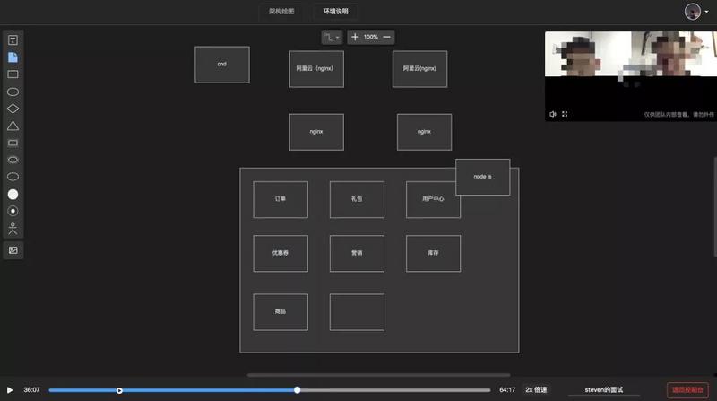 - 通过ShowMeBug架构绘图功能,极致的丝滑体验,不仅可以方便面试双方表达思考过程、逻辑架构,还可实时协同,双方随意修改,让高手过招更显目。
