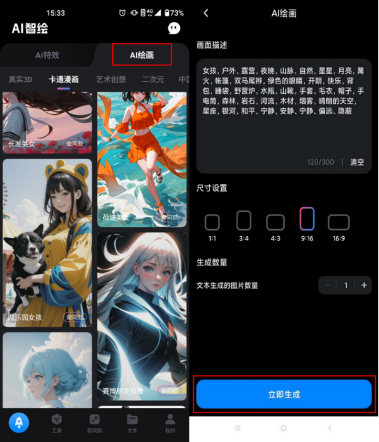 AI智绘不仅给我们提供了拥有各种艺术风格的AI绘画功能,并且它还支持将输入的文字内容转换为卡通形象,并自定义卡通人物的表情和动作等等。同时,除了AI绘画的功能外,这个软件还提供了一些其他实用的功能,例如照片修复和美化效果等等。