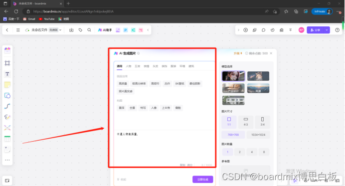 今天为大家介绍一款国产AI画图工具boardmix博思白板,它不仅可快速生成专业的图像,而且资源社区有海量精美图像提供创作灵感。